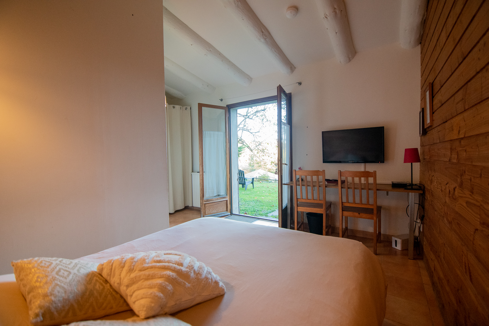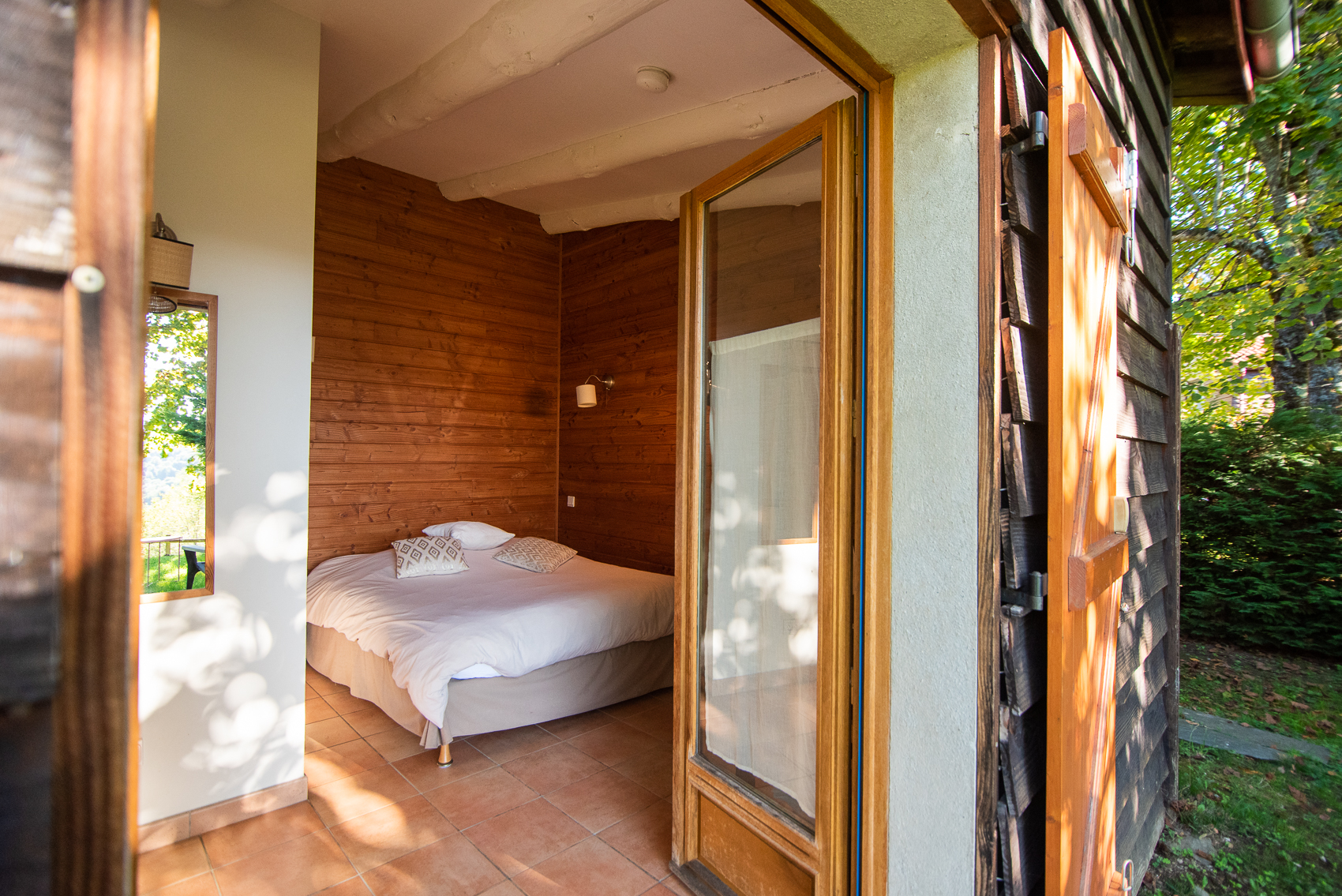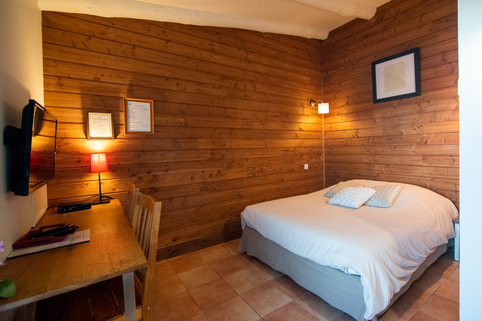 Nos chambres doubles Standard "Vue" sont équipées d'un lit double 140cm et d'une salle de bain privative avec baignoire ou douche. Vous y trouverez également une télévision et un coin terrasse face aux montagnes.